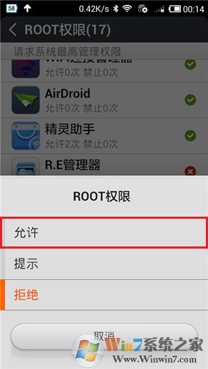 然后需要在系統(tǒng)機制中,允許他們獲取到ROOT權(quán)限,由于MIUI版本的差異,會有如下兩種情況中的任意一種出現(xiàn),具體操作方法如下: