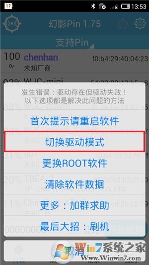 注意:1.運行該軟件后若提示缺少驅(qū)動文件,請檢查是否已將“wpa_cli”文件移動到“/system/bin/”目錄下并賦予755權(quán)限,或把另外一個備用文件重命名后將其替換并重新賦權(quán),亦可換一臺設(shè)備或重新刷機后再嘗試。