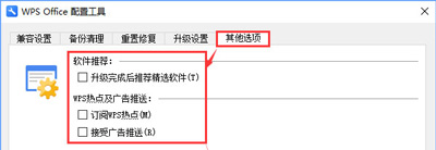 3、打開之后選擇“其他選項”——取消前面的“訂閱WPS熱點”、“接受廣告推送”,然后點擊【確定】搞定,如下圖: