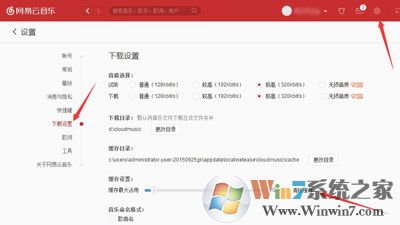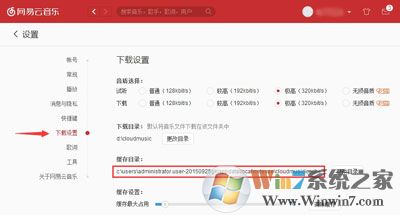 4、然后我們打開歌曲的緩存目錄,位置在“設置”界面內“下載設置”選項右邊顯示界面的緩存目錄那兒。