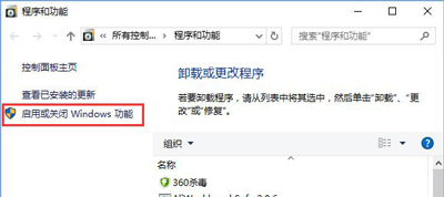 2、在程序和功能界面左側(cè)點(diǎn)擊【啟用或關(guān)閉Windows 功能】;