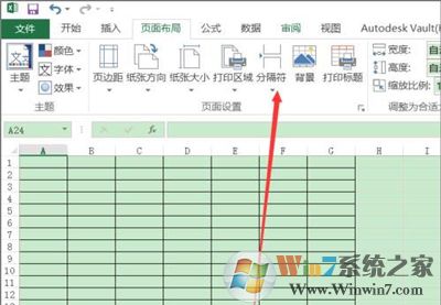 4、然后在【頁(yè)面布局】的【頁(yè)面設(shè)置】組中單擊【分隔符】按鈕。