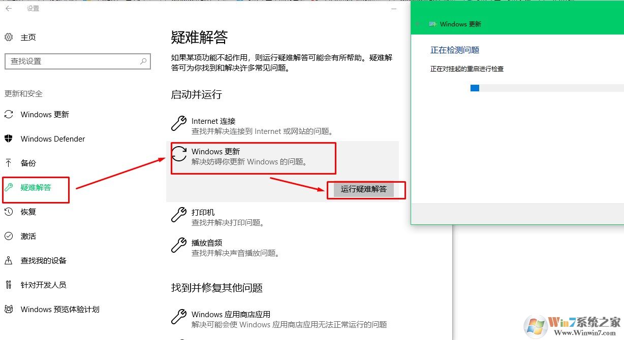 3、點(diǎn)擊Windows Update并選擇運(yùn)行疑難解答。