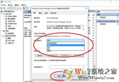3、雙擊打開Windows License Manager Service,將啟動類型 改為 自動,將服務(wù)狀態(tài)修改為 啟動 應(yīng)用 確定即可!