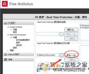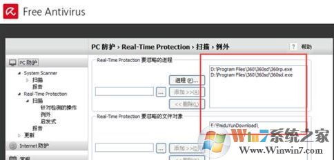 步驟3、設(shè)置進(jìn)程排除列外,進(jìn)入列外菜單有進(jìn)程,和對象文件夾列外,如圖: