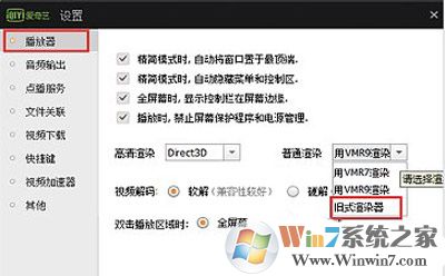 愛(ài)奇藝工具—選項(xiàng)—把使用愛(ài)奇藝自帶的播放器勾選上,然后選擇用舊式渲染器。
