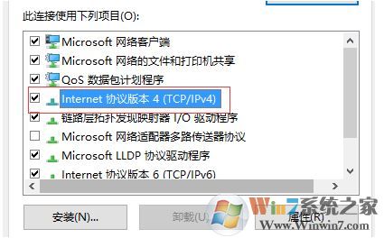 ③。打開后點擊“屬性”,找到“Internet協(xié)議版本4(TCP/IPV4)”單擊打開。