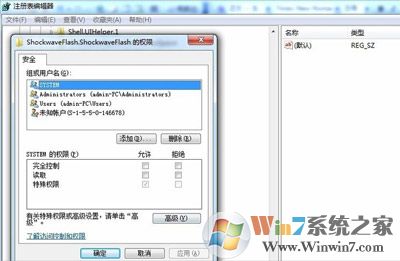 4、在新窗口中選中“組或用戶(hù)名(G)”中列示的“Administrators(你登錄計(jì)算機(jī)的用戶(hù)名\Administrators)”,然后將權(quán)限修改為完全控制和讀取,以代替之前的“特殊權(quán)限”選擇。