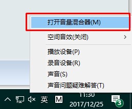 1、如果是Win7系統(tǒng)的電腦,我們點(diǎn)擊小喇叭,然后點(diǎn)擊“合成器”。win10系統(tǒng)的則是打開音量混合器。