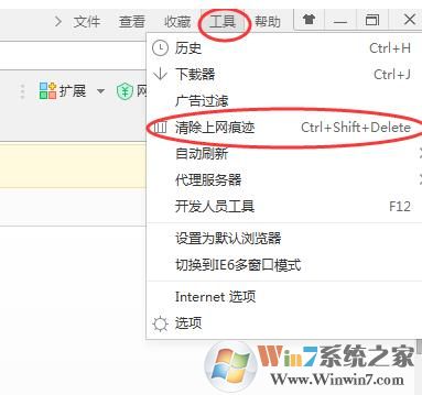 1、首先我們打開360安全瀏覽器,然后在右上角的“工具”選項里找到“清除上網(wǎng)痕跡”,然后打開;