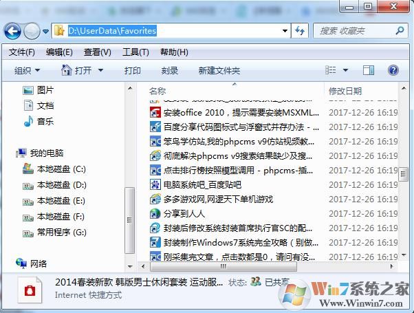 哦對了,IE瀏覽器默認(rèn)保存在C:\Users\用戶名\Favorites 下,如果更改過,應(yīng)該在D盤。