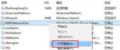 2、切換到服務(wù)頁(yè)面,隨便選中一個(gè)服務(wù),右鍵,選擇“打開(kāi)服務(wù)”;