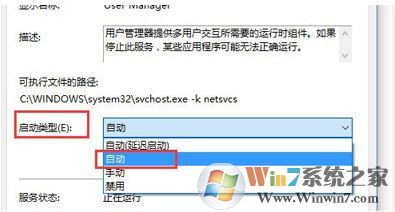 以上就是關(guān)于win10提示關(guān)鍵錯(cuò)誤開(kāi)始菜單和cortana無(wú)法工作的解決方法,我們只需要將User Manager設(shè)置為自動(dòng)啟動(dòng)即可。