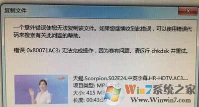 以上就是U盤無法復制文件提示錯誤代碼0x80071ac3的解決方法了,我們只需要檢測一下U盤磁盤是否出錯,系統(tǒng)就回自動為我們修復此錯誤了。希望對大家有幫助。