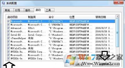 3、、重啟電腦,如果出錯的提示不出現(xiàn)了,那就是啟動項的問題→定位到啟動→逐一找到故障啟動項→取消選中對勾→確定→問題得以解決,如果不確定選擇全部禁用→確定也可以解決問題(隨機啟動項越少,開機越快);