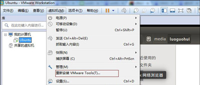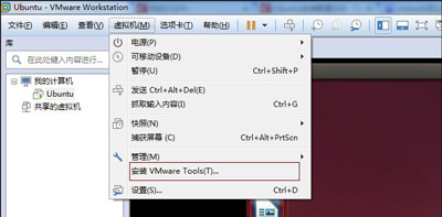 1、打開虛擬機(jī)VMware Workstation,啟動Ubuntu系統(tǒng),菜單欄 - 虛擬機(jī) - 安裝VMware Tools,不啟動Ubuntu系統(tǒng)是無法點(diǎn)擊“安裝VMware Tools”選項(xiàng)的,如下圖: