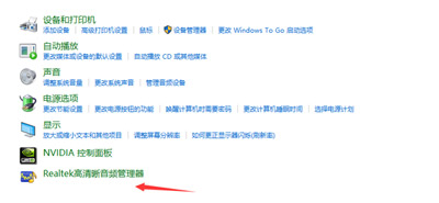 3、在“硬件和聲音”的界面中,點擊“Realtek高清晰音頻管理器”選項,如下圖所示: