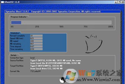 所有Ghost系統(tǒng)還原,任何方式都離不開經(jīng)典的Ghost還原進(jìn)度條: