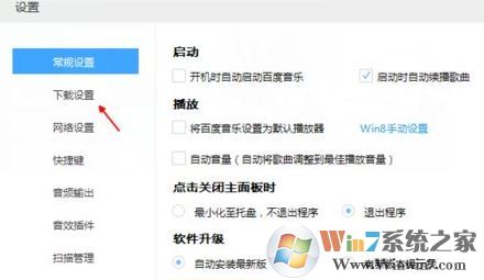 4、打開設(shè)置的頁面,在左側(cè)找到下載設(shè)置的選項(xiàng)卡,如圖: