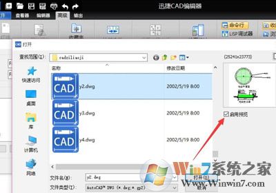 2、安裝并運行CAD編輯器工具后,就可以點擊“打開”按鈕以打開其中一個待對比區(qū)域的CAD文檔了,同時還可以進行預覽。