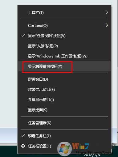 1、任務(wù)欄右鍵選擇顯示觸摸屏幕鍵盤。