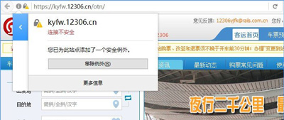 以上就是瀏覽器打不開12306火車票訂票網(wǎng)提示您的連接不安全的修復(fù)方法了,如果設(shè)置之后還是無法打開或者看完之后還是不會設(shè)置的用戶建議安裝其它的瀏覽器試試。希望對大家有幫助。