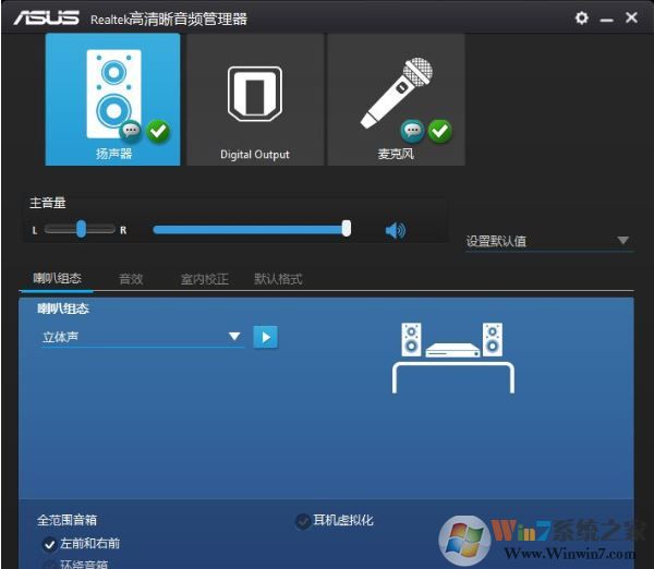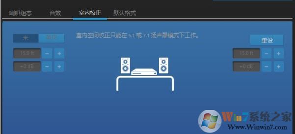 6、選擇室內(nèi)矯正音效,提示室內(nèi)空間矯正只能在5.1或7.1揚(yáng)聲器模式下工作,所以不用處理;