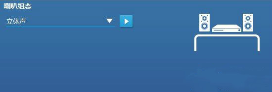 3、根據(jù)自己的音響設(shè)置喇叭組態(tài),后面有個(gè)像視頻播放的按鈕,點(diǎn)擊它可以測試設(shè)置;