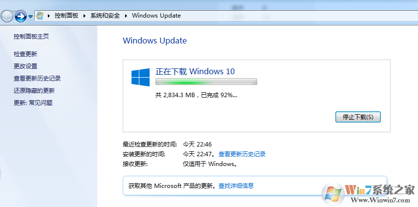7、重新檢查系統(tǒng)更新,發(fā)現(xiàn)已經(jīng)可以下載Windows 10了。