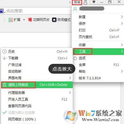 4、打開360瀏覽器,點(diǎn)擊【菜單】-【清除上網(wǎng)痕跡】。