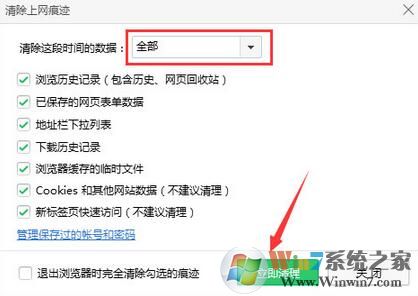 5、將【清除這段時(shí)間的數(shù)據(jù)】下拉菜單修改成【全部】,在下面勾選全部選項(xiàng),點(diǎn)擊【立即清理】即可。