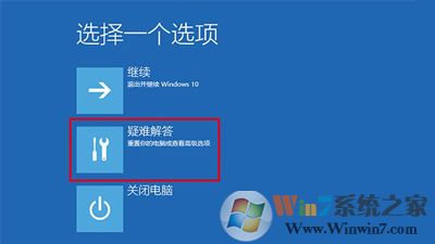1、首先要進(jìn)入安全模式,一般都是開機(jī)時(shí)按F8即可,如果不行,可以嘗試幾次強(qiáng)制關(guān)機(jī)重啟,知道出現(xiàn)如下圖所示界面即可,選擇疑難解答。