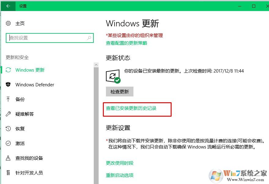 3、選擇查看已安裝更新的歷史記錄。