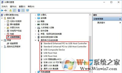 3、接著打開計(jì)算機(jī)管理-設(shè)備管理器,點(diǎn)擊“通用串行總線控制器”,查看下面是否有感嘆號(hào),如有將其卸載,重啟電腦聯(lián)網(wǎng)后會(huì)自動(dòng)安裝驅(qū)動(dòng)。