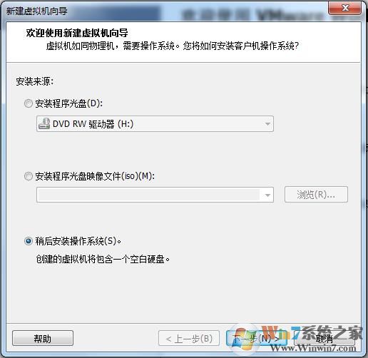 2、由于大家要安裝的系統(tǒng)可能有不同,這里我們先選擇稍后安裝操作系統(tǒng) 創(chuàng)建一個(gè)空白的硬盤;