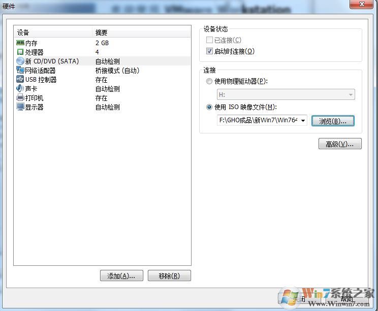 8、在CD DVD中選擇你要安裝的系統(tǒng)鏡像,為了方便,小編選擇了GHOST WIN7 64位旗艦版(也可以使用Win7原版),設(shè)置完成后關(guān)閉硬件配置;