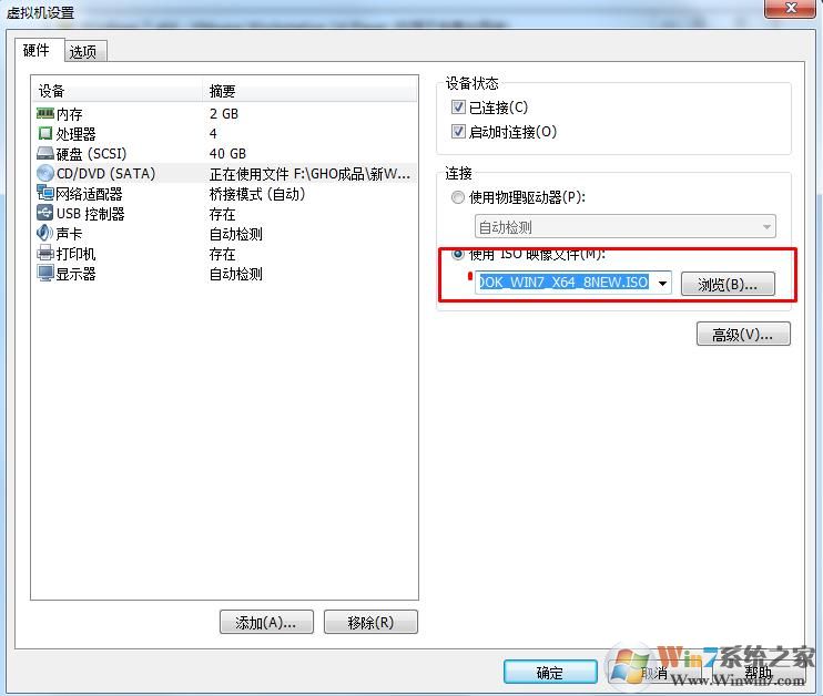 1、首先在虛擬機(jī)設(shè)置中 CD/DVD 選項(xiàng)下,加載一個(gè)可啟動(dòng)的ISO鏡像;