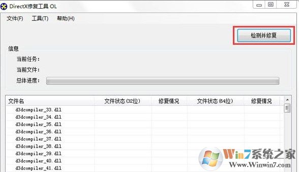 2、下載安裝后,打開軟件,點(diǎn)擊“檢查并修復(fù)”,它首先會(huì)檢查系統(tǒng)所缺少的所有DLL文件,然后逐步下載修復(fù);