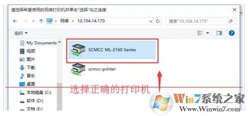 5、這時(shí)出現(xiàn)了遠(yuǎn)程共享的打印機(jī),選中需要的打印機(jī),并點(diǎn)擊“選擇”。