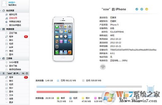 二、將iOS設(shè)備連接電腦,打開(kāi)PP助手,如圖所示: