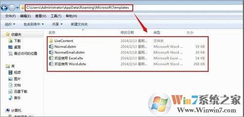 5、如果按以上操作啟動WORD 2013速度都沒有得到改善關(guān)閉WORD再進(jìn)入C:\Users\Administrator\AppData\Roaming\Microsoft\Templates 這個(gè)目錄把這里面的文件全部刪除。