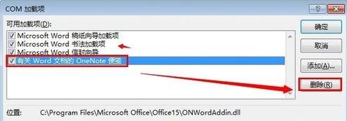 4、再把COM加載項(xiàng)內(nèi)不要的項(xiàng)刪除就可以了。再把WORD 2013關(guān)閉再開啟試試看速度有沒有得到提升。