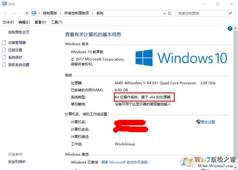 2、我們就可以在電腦屬性面板中看到自己的處理器是幾位的了。