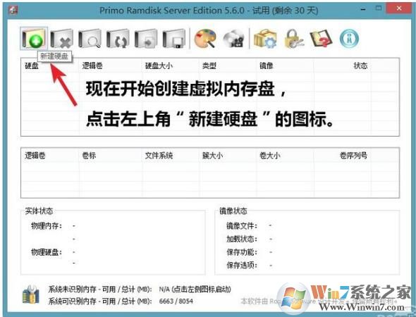 3、點(diǎn)擊新建硬盤,開始創(chuàng)建虛擬內(nèi)存盤了。