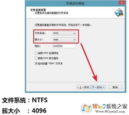 7、文件系統(tǒng)ntfs 簇的大小 4096 如下圖,再點(diǎn)下一步;