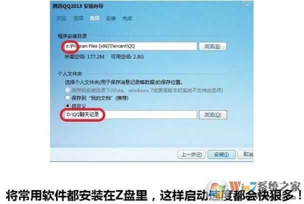 18、我們還可以把QQ什么的都放到Z盤,這樣啟動(dòng)會(huì)快很多,同樣的,設(shè)計(jì)軟件photoshop什么的放在內(nèi)存盤里,速度也會(huì)快很多。