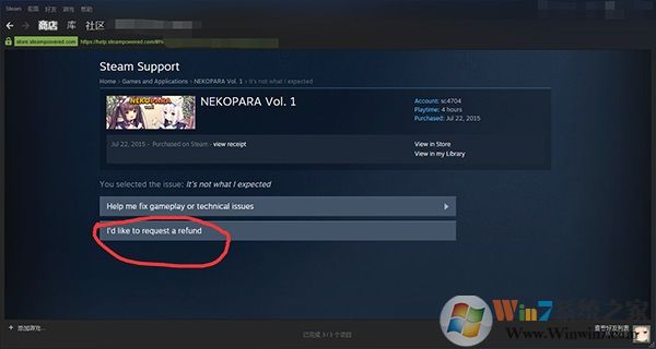 Steam游戲退款的方法: