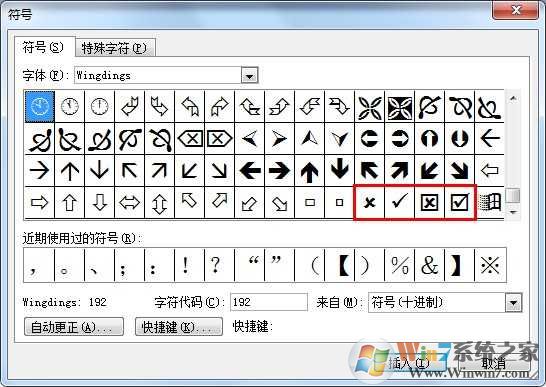 同樣打開Word中“菜單欄”-->插入-->特殊符號,在彈出的“插入特殊符號”中單擊“數(shù)字符號”,在下面你就可以找到想要的“鉤鉤”和“叉叉”了。(如下圖)