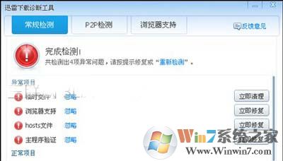 1、點擊“幫助”、“迅雷下載診斷工具”,讓診斷工具為您查看那里出了問題,如果提示異常,請點擊“立即修復(fù)”;