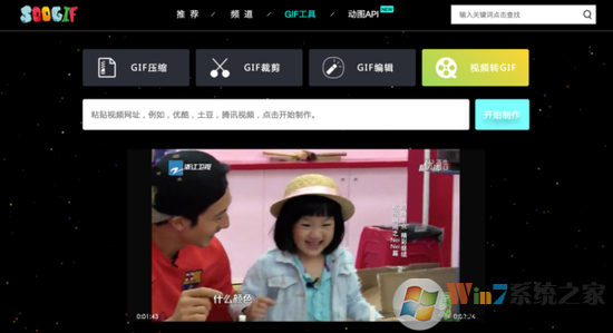 SOOGIF網(wǎng)頁集合了GIF壓縮、裁剪、編輯和視頻轉(zhuǎn)GIF功能于一體,可以對GIF文件進(jìn)行更符合想法的編輯操作,只需要在地址欄粘貼優(yōu)酷、土豆、騰訊的視頻網(wǎng)址,就可以在線將視頻生成GIF,而且不限制視頻資源的時長!